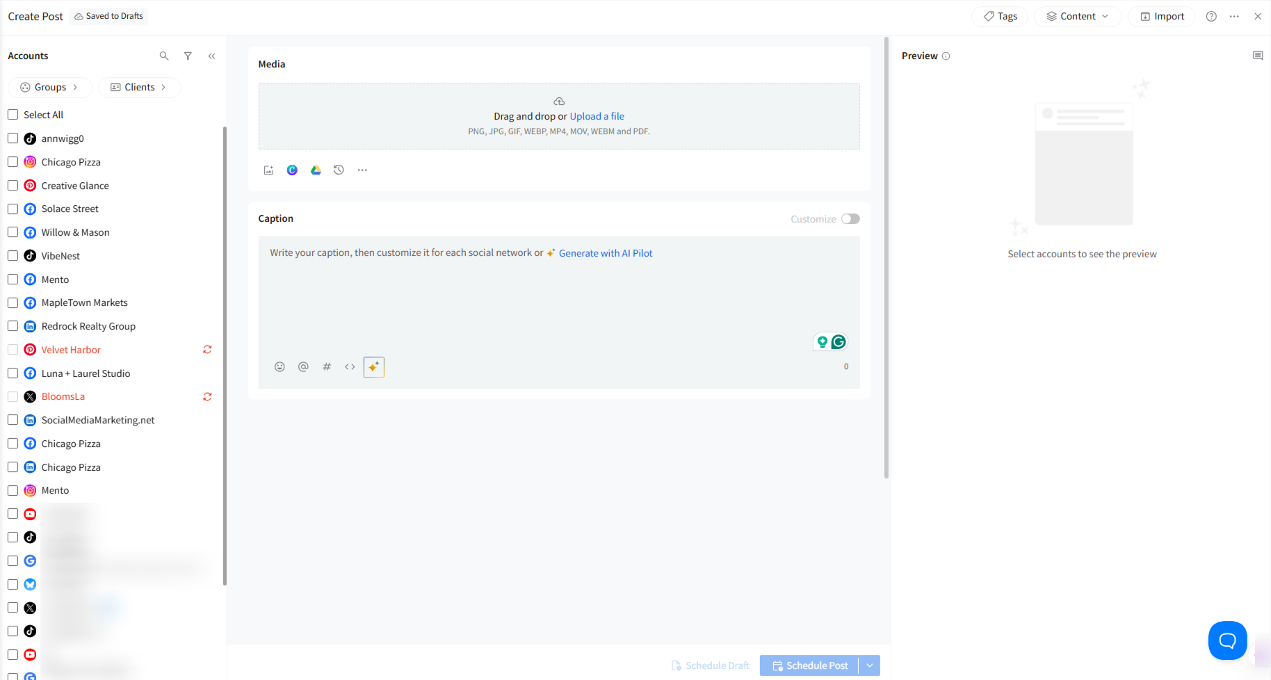 - This reduces the need to select accounts manually each time and is especially helpful for agencies managing multiple accounts or creating several posts in one session.