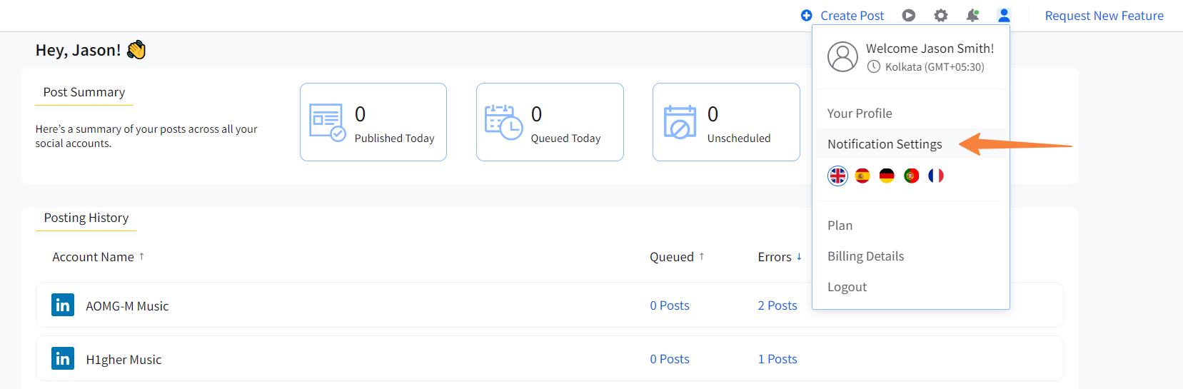 You can change the notification frequency in your SocialPilot workspace very easily. This is how you can adjust your notification settings: