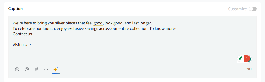 Once you have created your Custom Fields, incorporating them into your posts is simple. Just focus on the core content, and SocialPilot will handle the customization for each account: