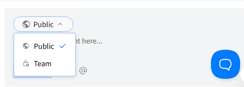 Note that the Team comments are visible in a blue background, and the Public comments are shown in a grey background. This helps team members to differentiate between internal and external communication.