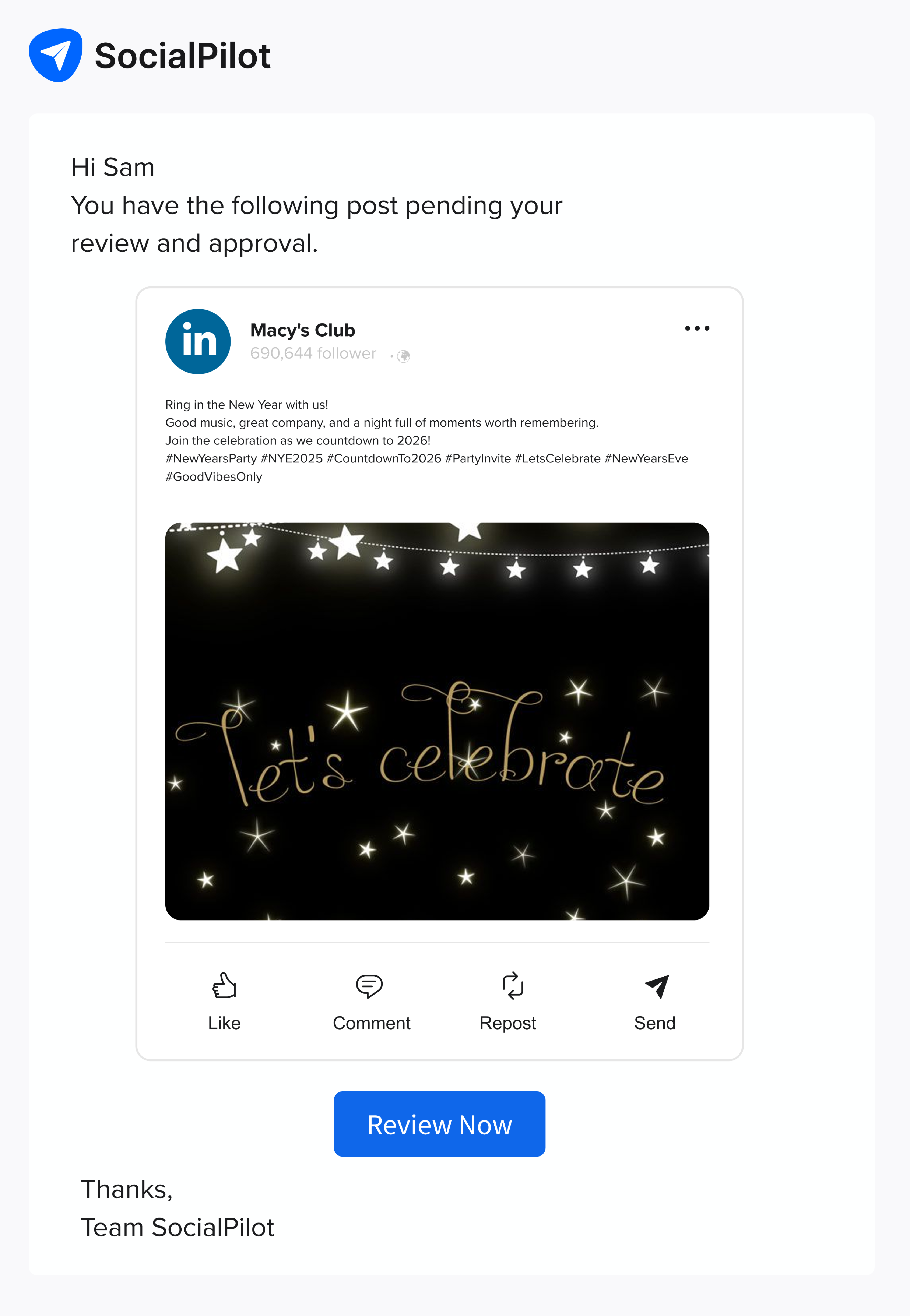 When Clients want to review posts without logging into their SocialPilot account, they can do so using the Approval links. They can also leave comments on posts using the same Approval links.
