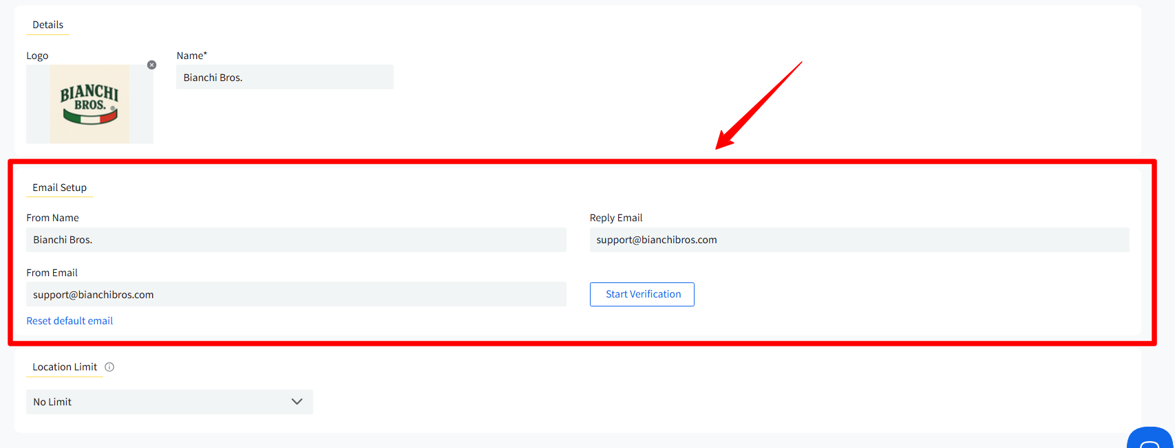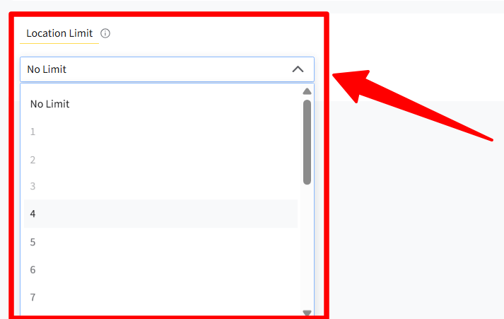 Choose the maximum number of locations that can be added under this brand. You can select a specific number or choose No Limit if you don’t want to restrict the number of locations.