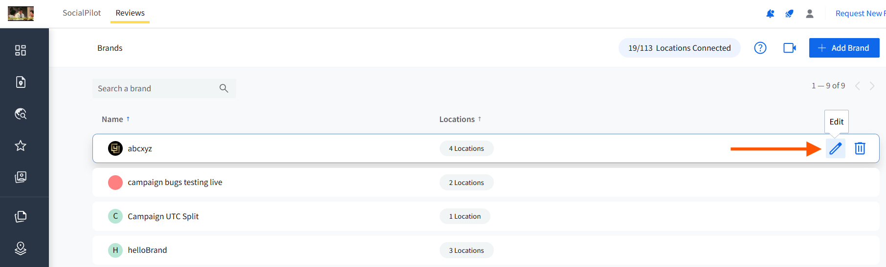 If you need to update a brand’s information or modify specific details, SocialPilot Reviews provides an easy way to do so.
