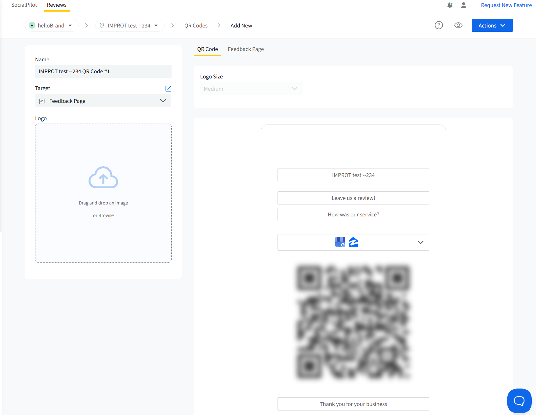 Login to your SocialPilot Reviews and from the side panel click on Reputation > QR Codes.