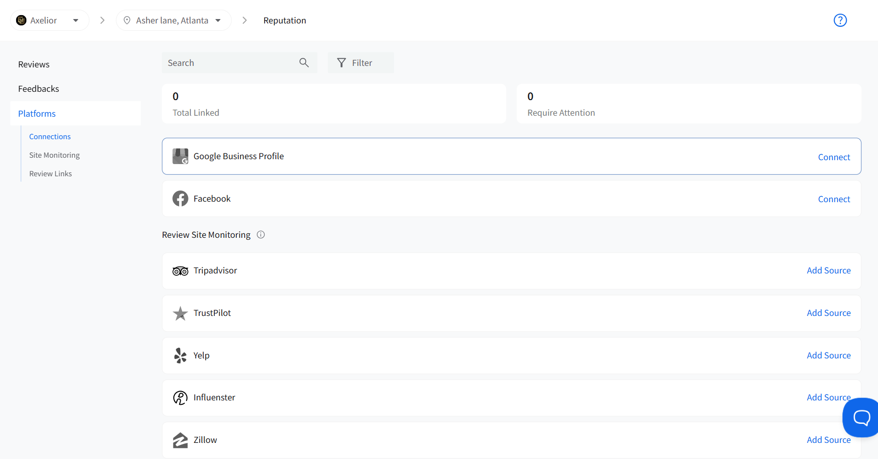 Note: If you have opted into a listing publisher, it will be automatically connected as a reputation platform for the same location.