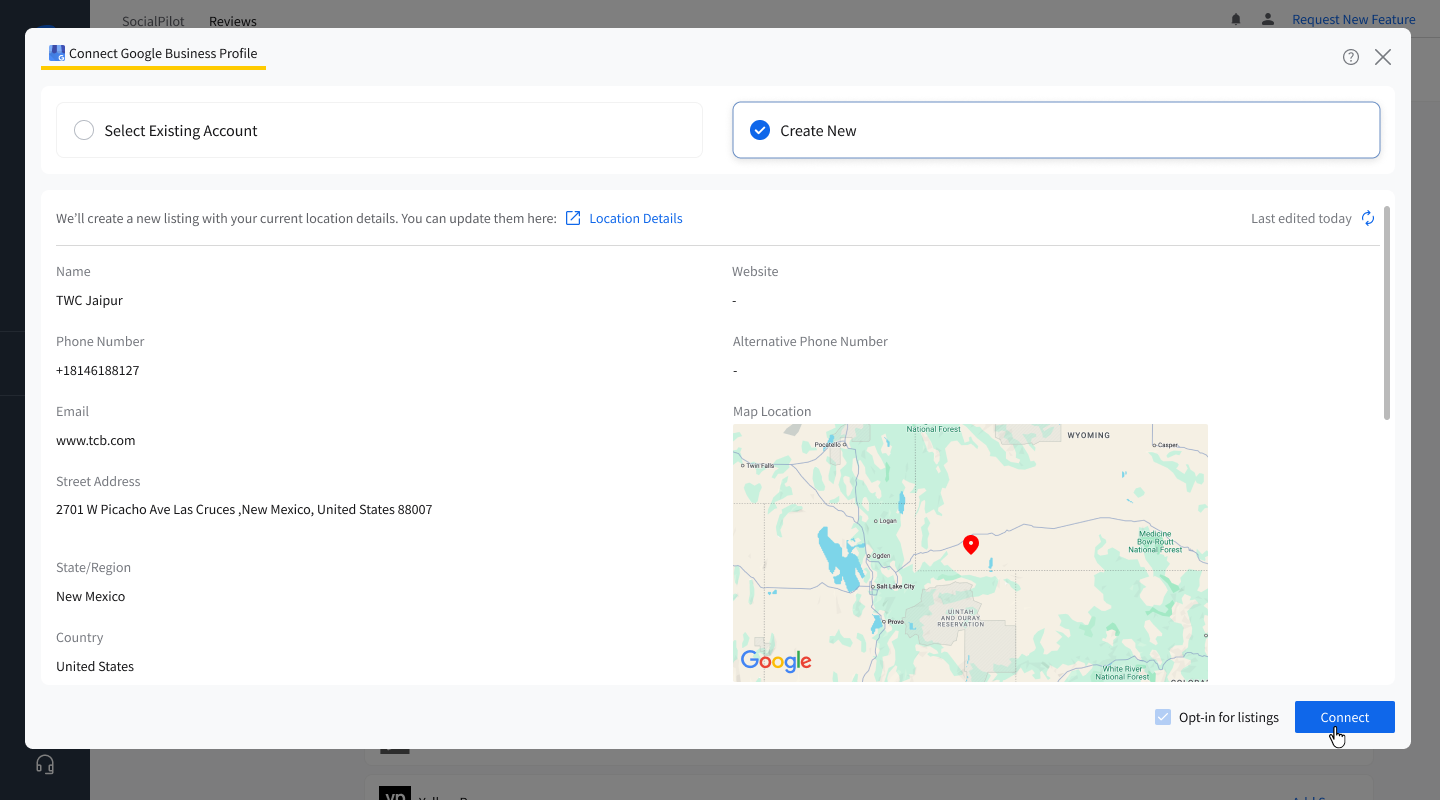 Note: When you connect a review platform to SocialPilot Reviews for reputation management, you can choose to opt in for listing management on it as well. However, when you opt into a platform for listing management, it automatically gets connected as a review management platform as well.