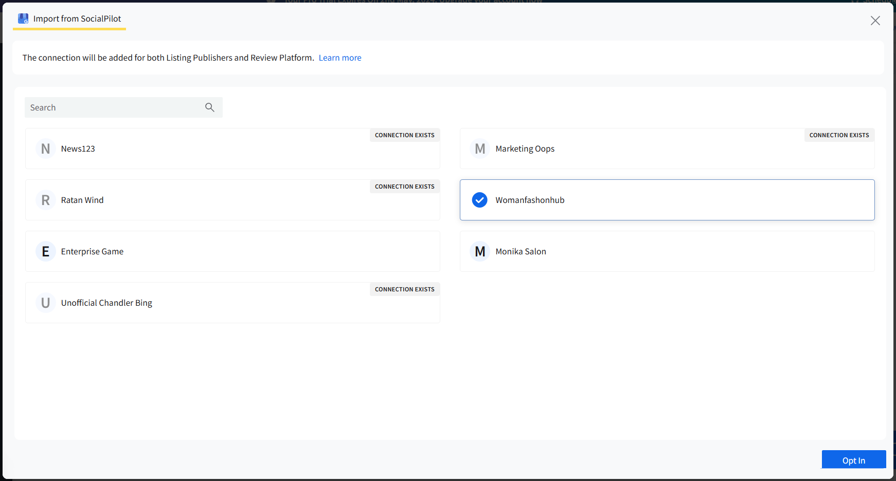 - When you connect your listing to a publisher, it automatically gets added as a Review platform in SocialPilot Reviews.