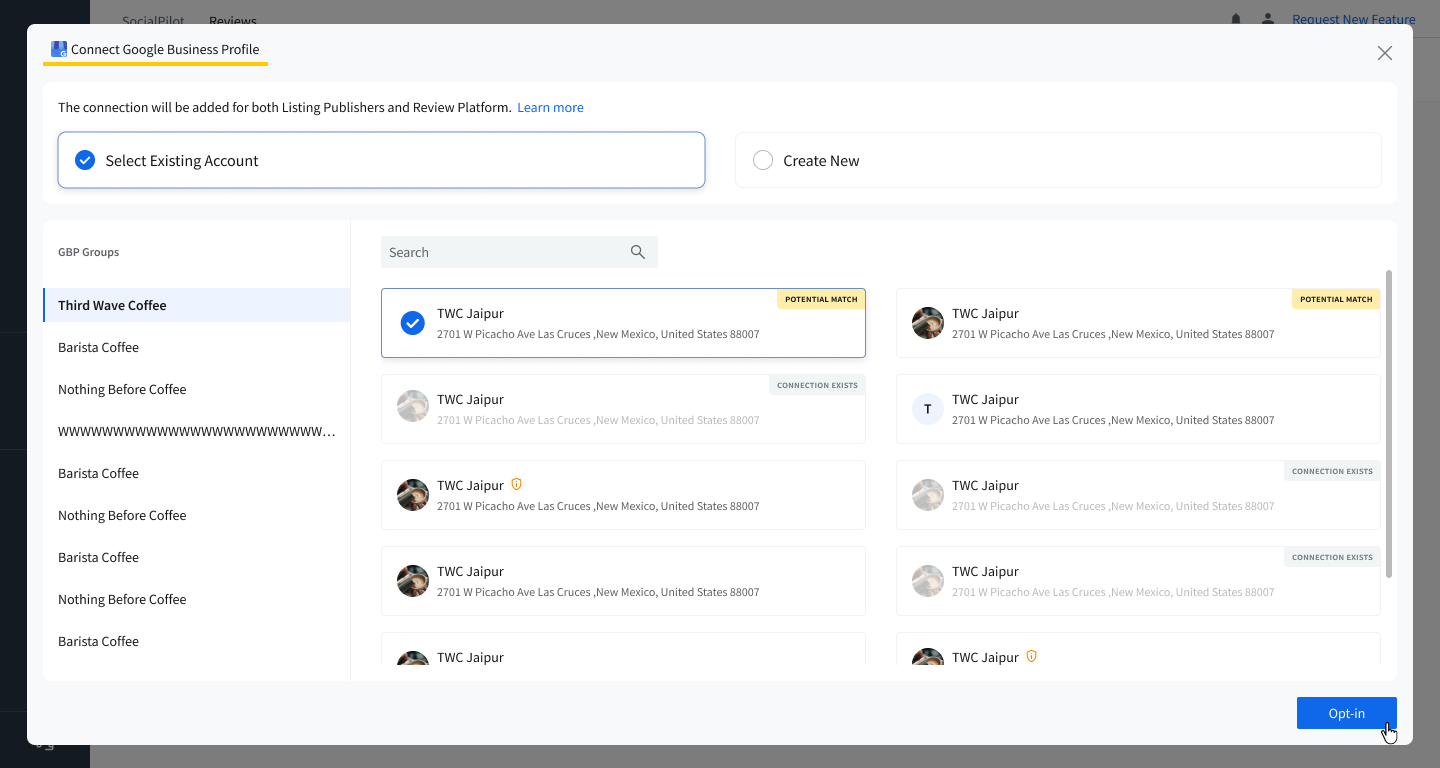 - If you have a pre-existing listing on any platforms and you connect that to SocialPilot Reviews, it will align the listing with the location details you have saved in SocialPilot Reviews.