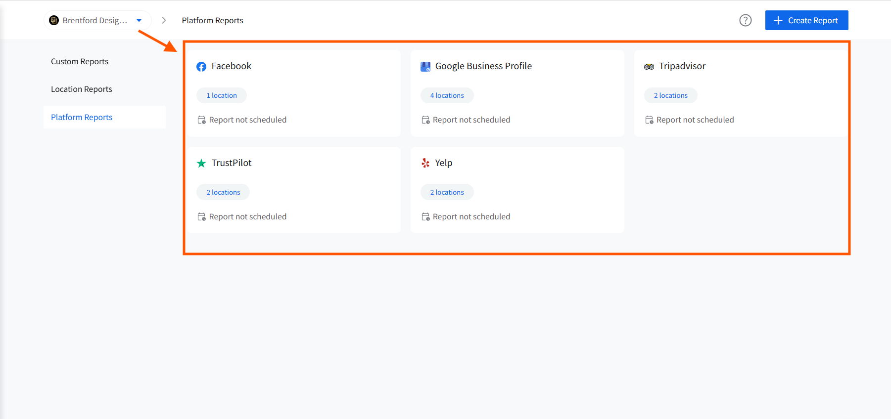 - All platform reports are grouped under their respective brands for easy access and organization.