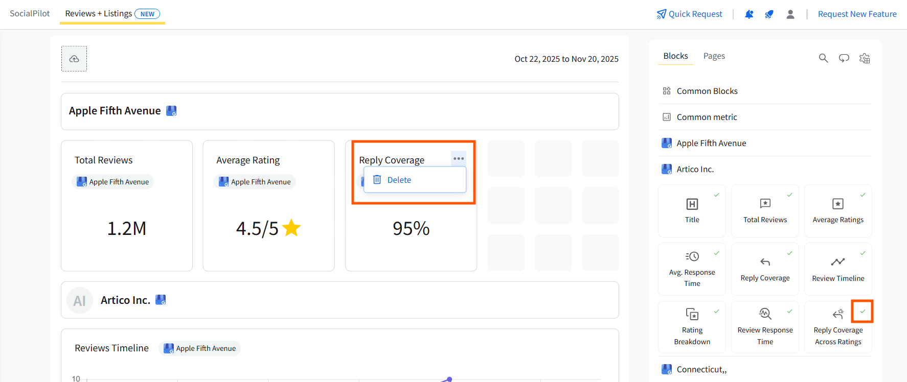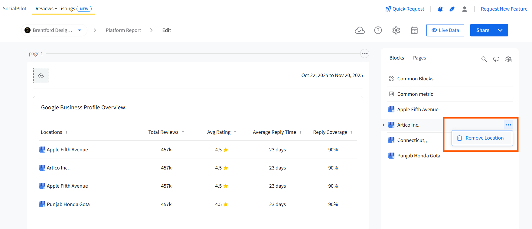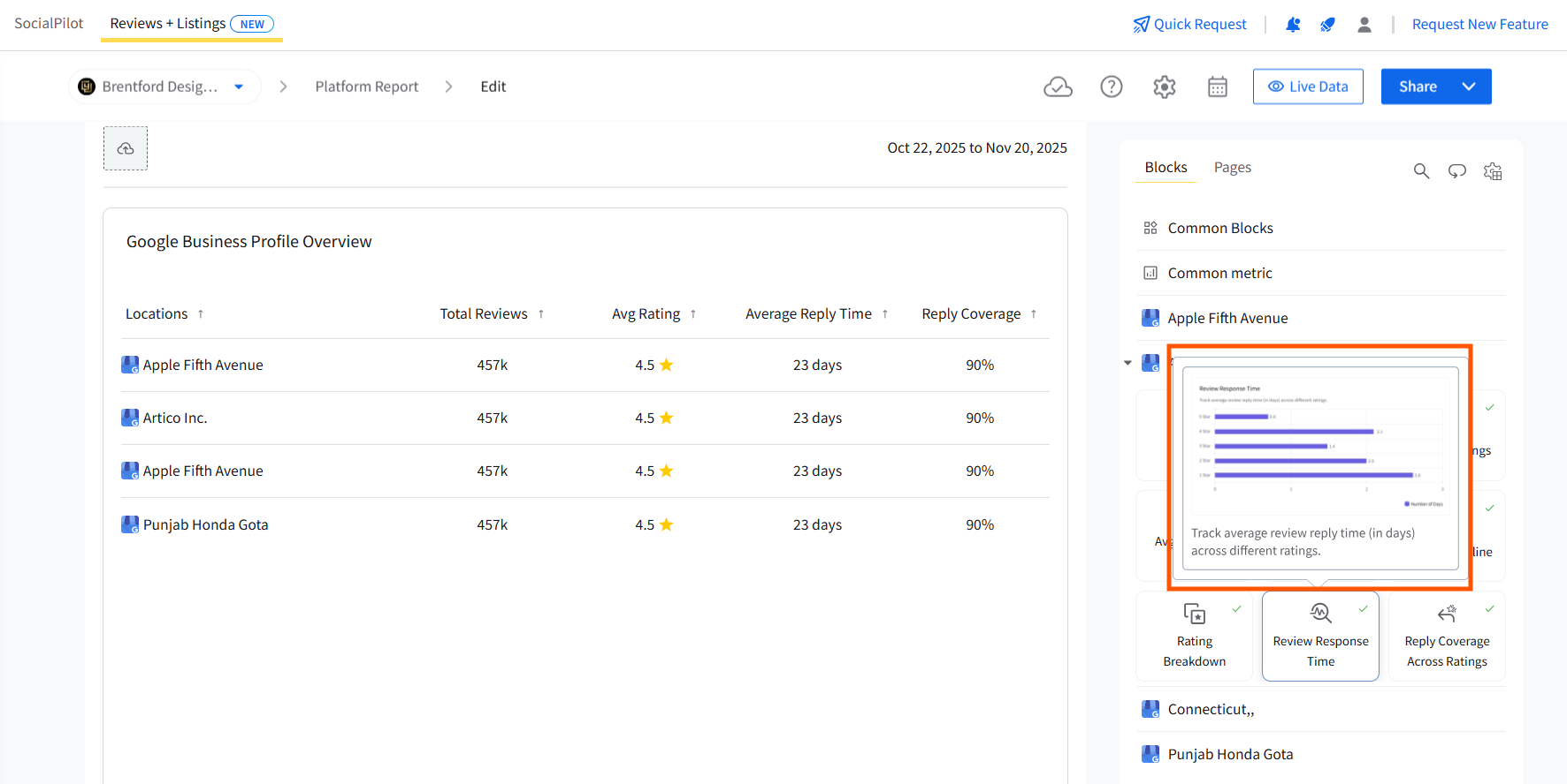 Platform Reports in SocialPilot Reviews let you view, analyze, and compare performance data from all your connected review platforms in one place. Each platform automatically generates its own report under the associated brand, helping you monitor reviews, track growth, and identify trends effortlessly.