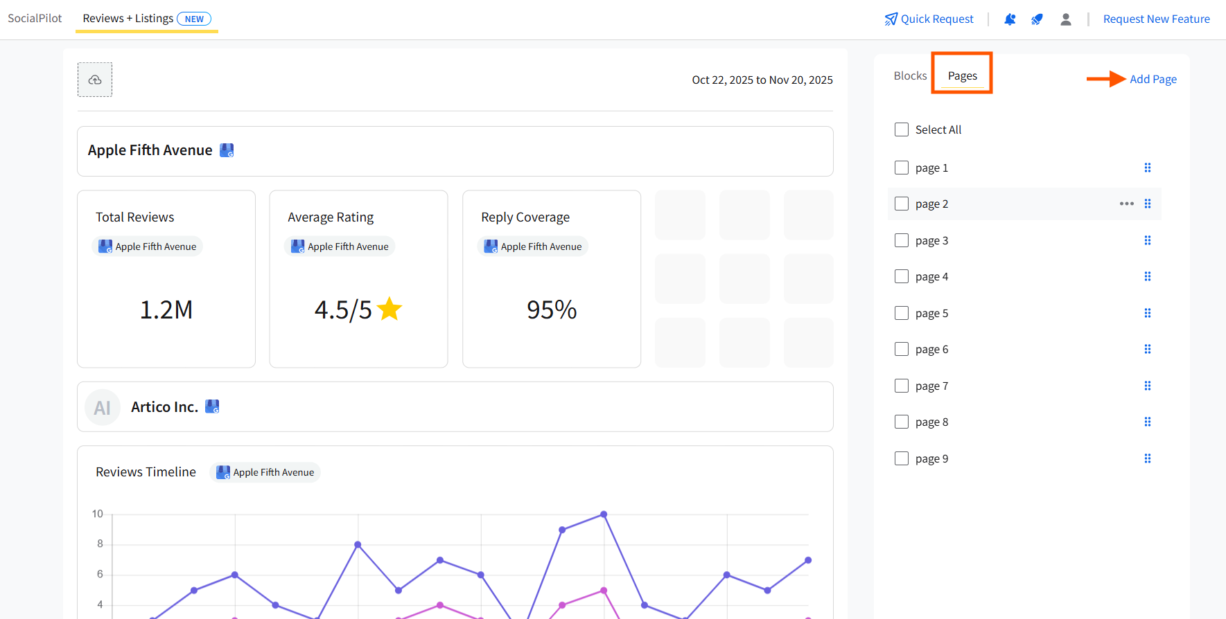 - Click Add Page to create a new one. New pages will automatically be named Page 1, Page 2, and so on.