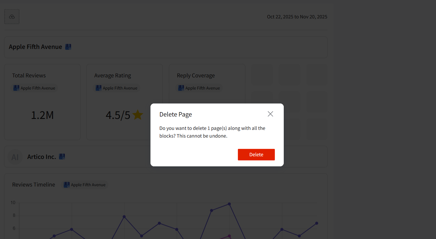 - If the page contains any blocks, you’ll see a confirmation pop-up before deletion.