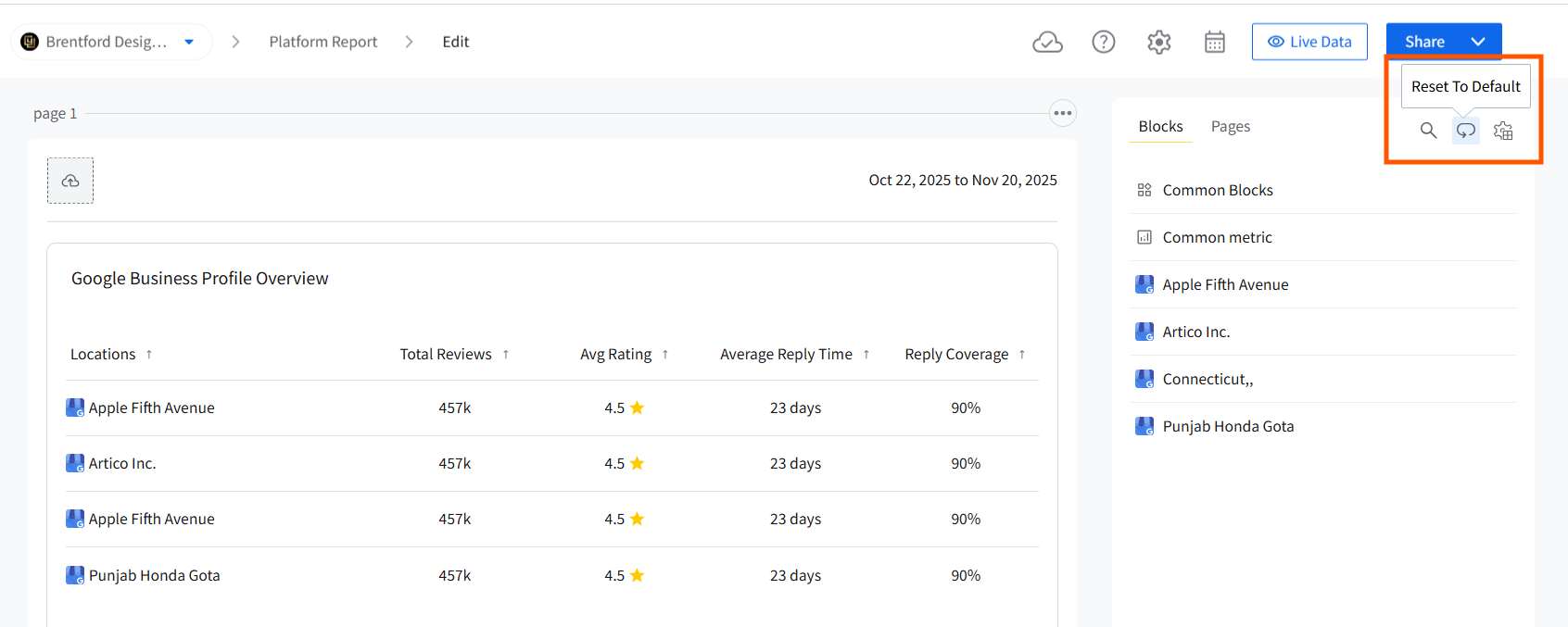 - As long as your Platform Report follows the system Default Template, it will automatically update with new metrics and newly connected platform accounts.