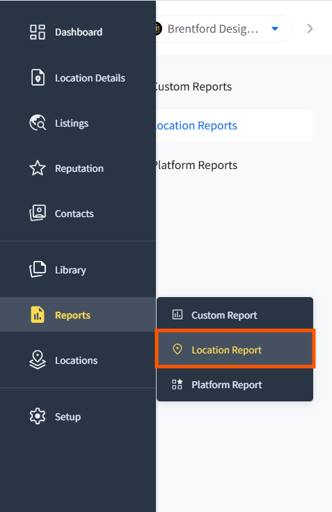 - You’ll see the Brand Dashboard, where all location-specific reports are listed.