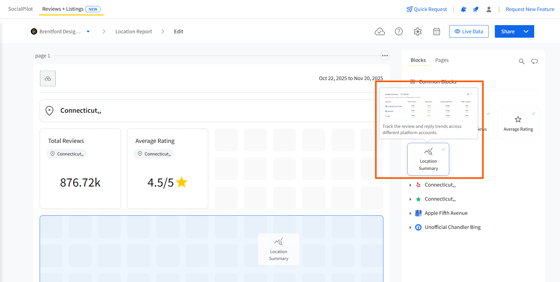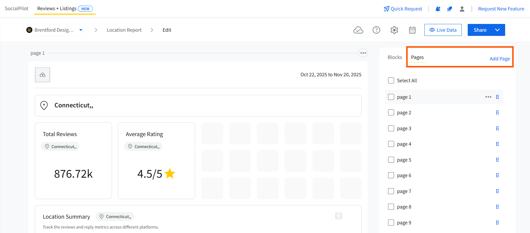 Here’s how you can create and customize Location Reports on SocialPilot Reviews: