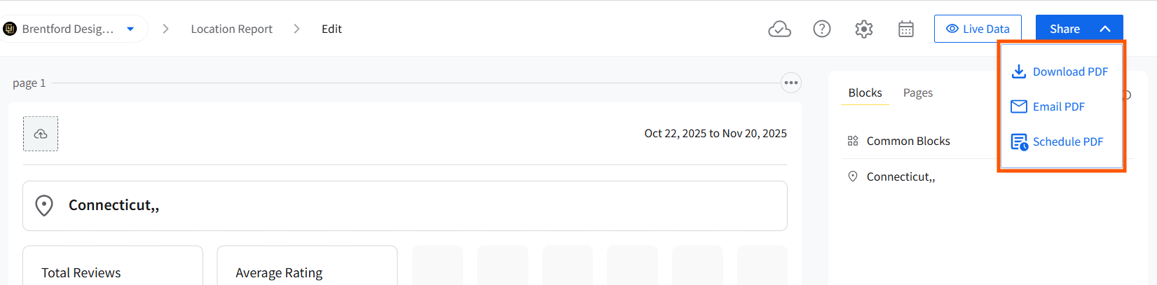 Share Options: Download reports as PDFs, email them, or schedule automated deliveries.