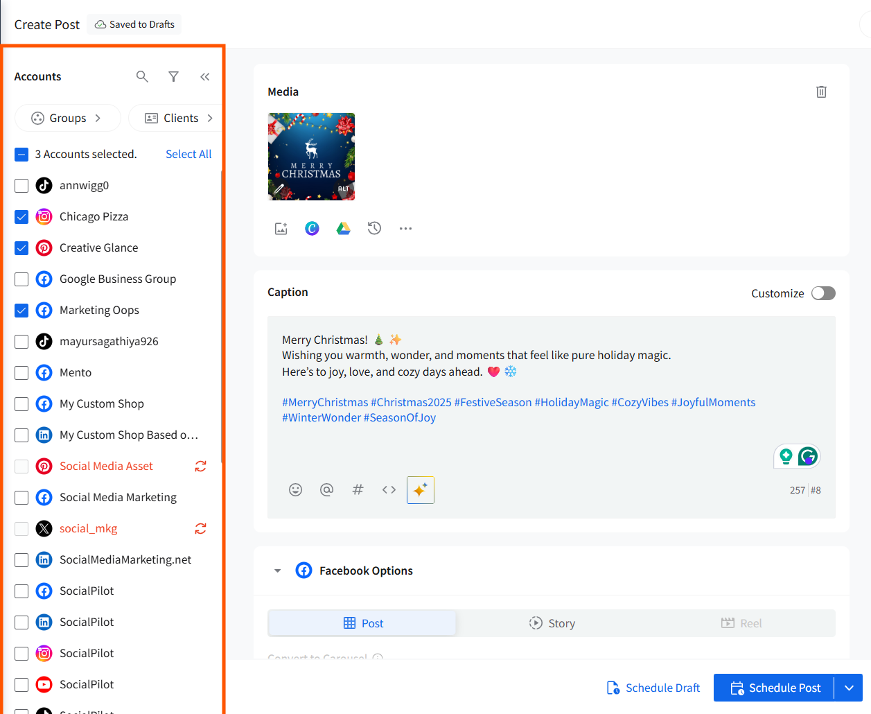 ✔️ Only the relevant platform customization options appear based on the accounts selected.
