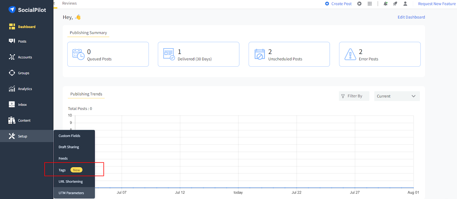 Creating and managing Tags in SocialPilot is a straightforward process. Let us show you the two ways to do so.