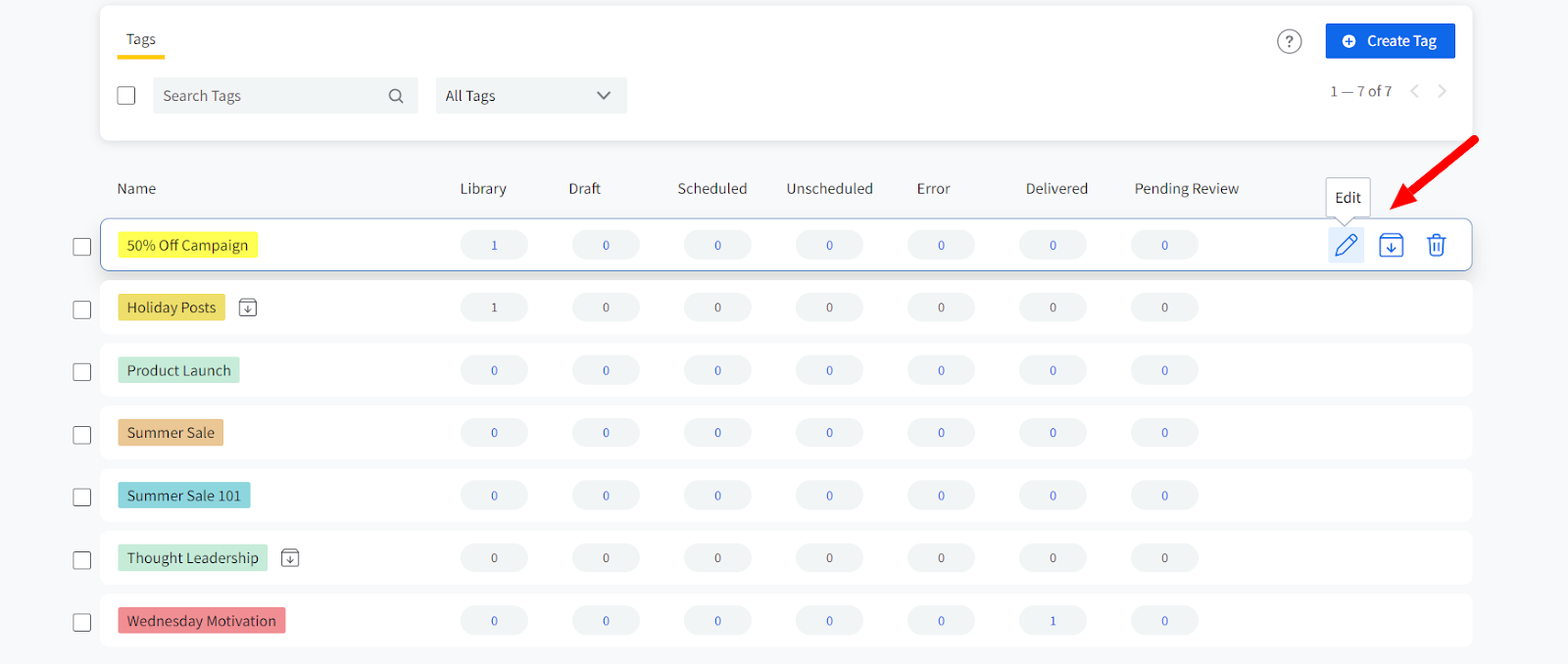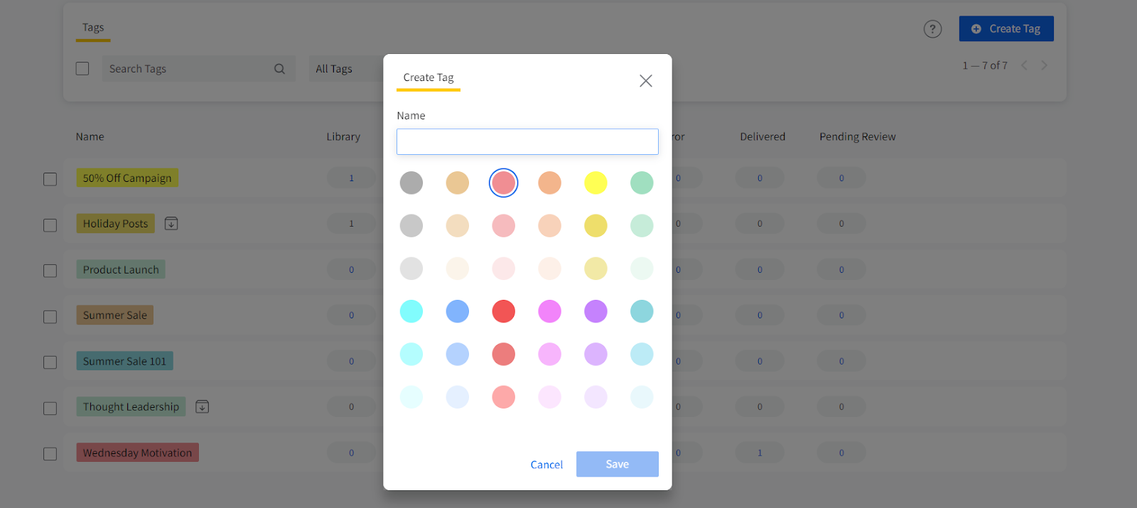 Add Tags to posts with different statuses, such as drafts, queued, delivered, or pending review. This helps maintain a clear overview of all content stages.