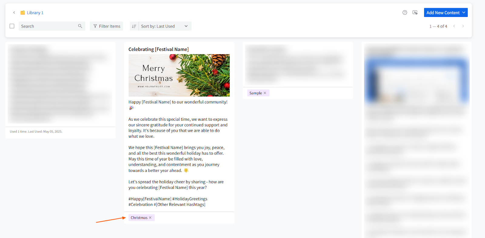 You can apply tags to each separate library as well as the content assets stored in them. Using tags to classify content and libraries streamlines the content organization in SocialPilot so the users can find what they are looking for, resulting in swift post creation.