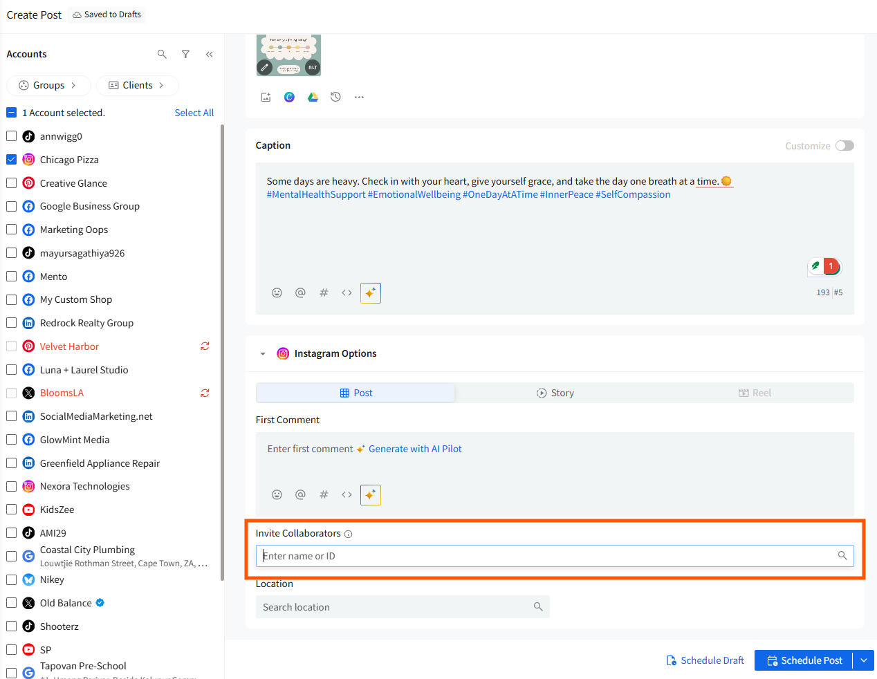 How To Create a Collaborative Instagram Post From SocialPilot in the New Create Post Experience?