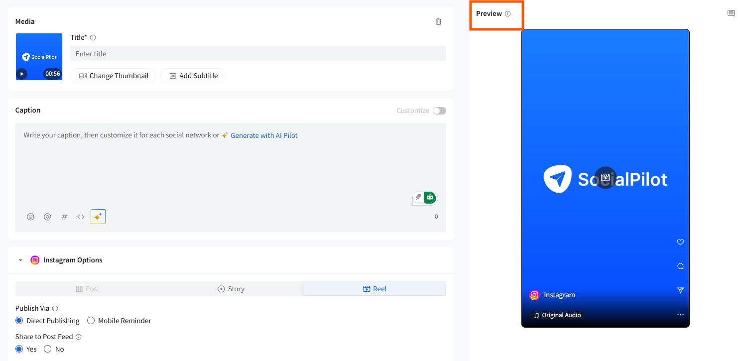 Use the Post Preview panel to see how the video thumbnail will appear on the selected platforms before scheduling.