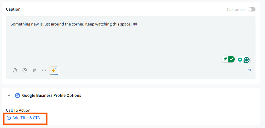Call-to-action buttons make your posts more interactive and help drive specific actions, such as visiting a website or making a purchase. You can add call-to-action buttons to your posts for Facebook pages and Google Business Profiles from the respective platform tabs.
