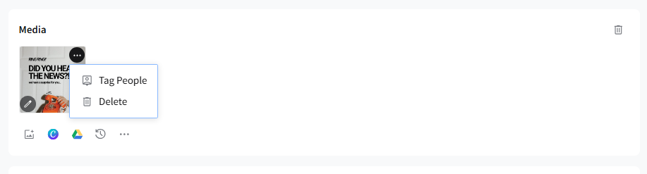 - Any media option (alt text, tag people, subtitles, change thumbnail) shows only when the user has at least one connected account that supports that option (accounts may be paused or require reconnection; they still trigger option visibility).