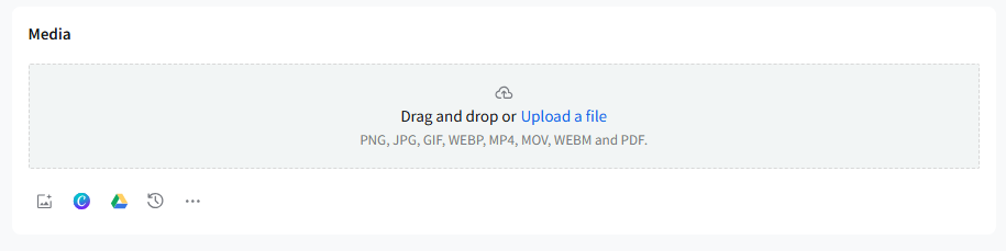 - You can upload media from your local device or choose files from Google Drive, Dropbox, Box, or the Recently uploaded option.