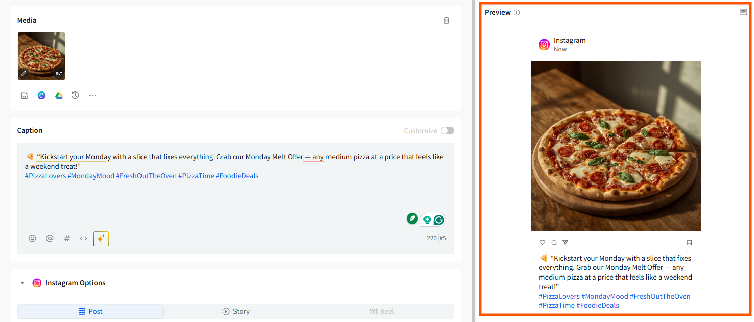 With the redesigned Create Post experience, all media uploads, caption writing, and platform-specific customizations appear in a cleaner, more structured layout, making it easier to tailor Instagram content while ensuring full support for the latest publishing requirements.