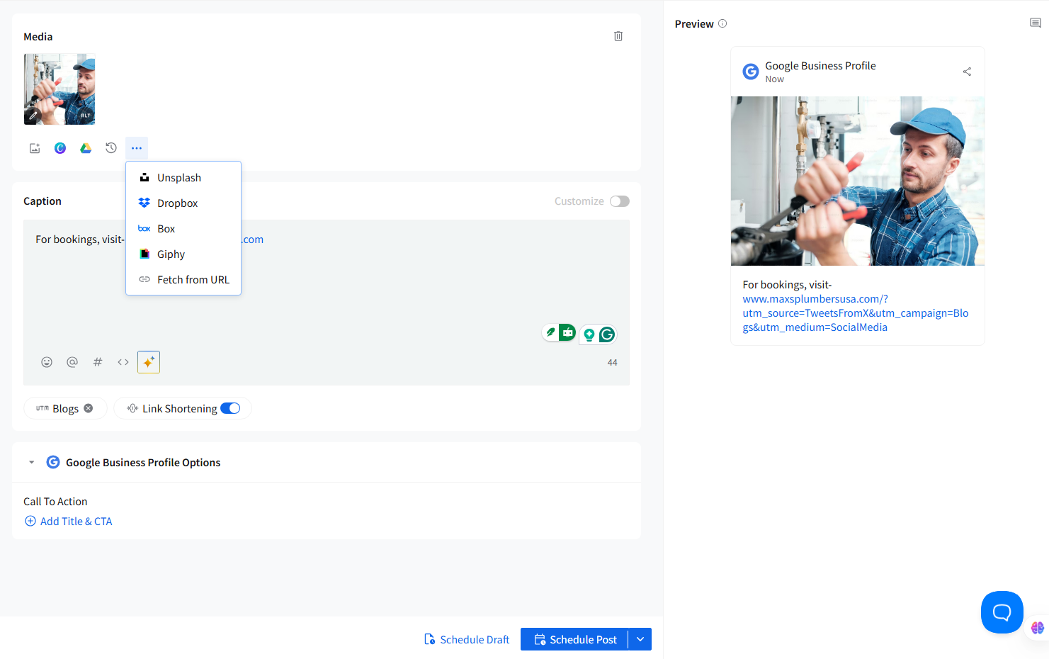 - External media sources (Unsplash, GIPHY for GIFs—though GBP does not support GIFs)