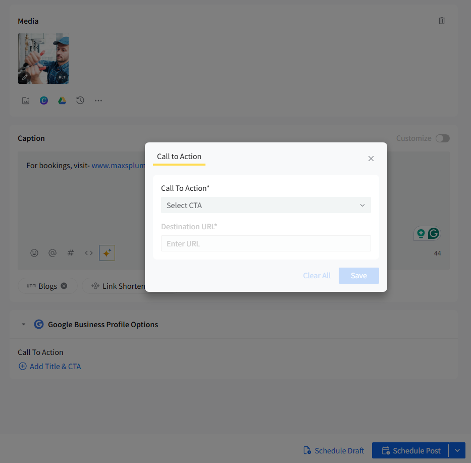 Google Business Profile (GBP) listings are essential for businesses of all sizes. A well-managed GBP listing can increase your business's visibility, build credibility, and drive more foot traffic to your location. With SocialPilot’s redesigned Create Post experience, you can customize your GBP posts more efficiently with a streamlined media workflow, direct access to recently uploaded assets, and quicker access to CTA options—all while managing content alongside other social platforms in one place.