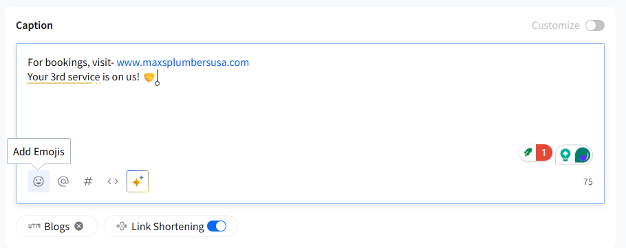 - In the Caption box on SocialPilot, click on the emoji icon to find the perfect emoji for your post.