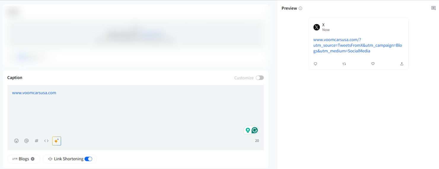 - The UTM parameters will automatically append to any URL you add in the caption.