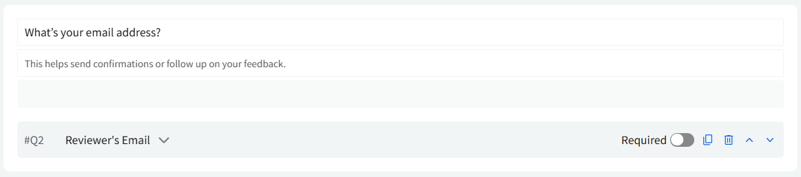 From simple ratings to detailed written responses, each question type serves a specific purpose and helps you guide customers through the form smoothly.