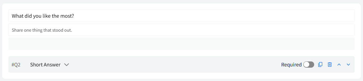 - Short Answer: Provides a single-line text input for brief responses.