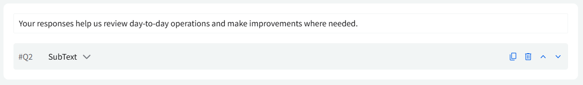 SubText: This field adds short supporting text below a question or section to clarify what’s being asked.