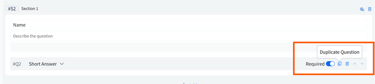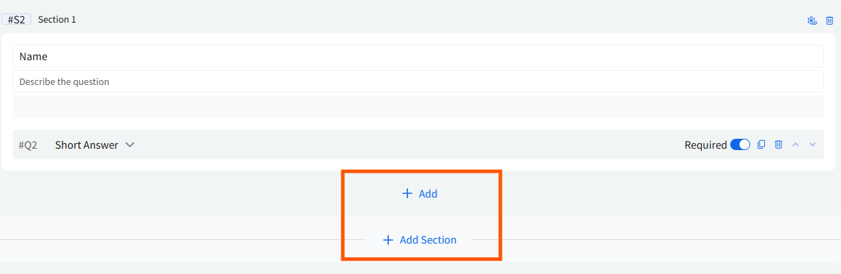 To add more questions within the same section, click Add below the existing question.